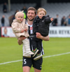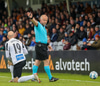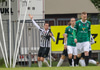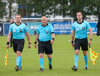 Erlendur Eiríksson flautar, honum til aðstoðar með flögg og headset eru þeir Jóhann Gunnar Guðmundsson og Gylfi Már Sigurðsson.