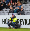 Kjartan mjög ósáttur við eitthvað þarna inni í teignum en veit ekki hvað...er þó staðinn upp.