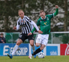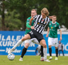Atli og Kristinn tvinna sig upp vinstra megin og að lokum leggur Atli boltann út í teig og Kennie á skot sem er blokkerað.