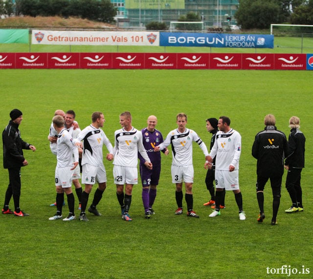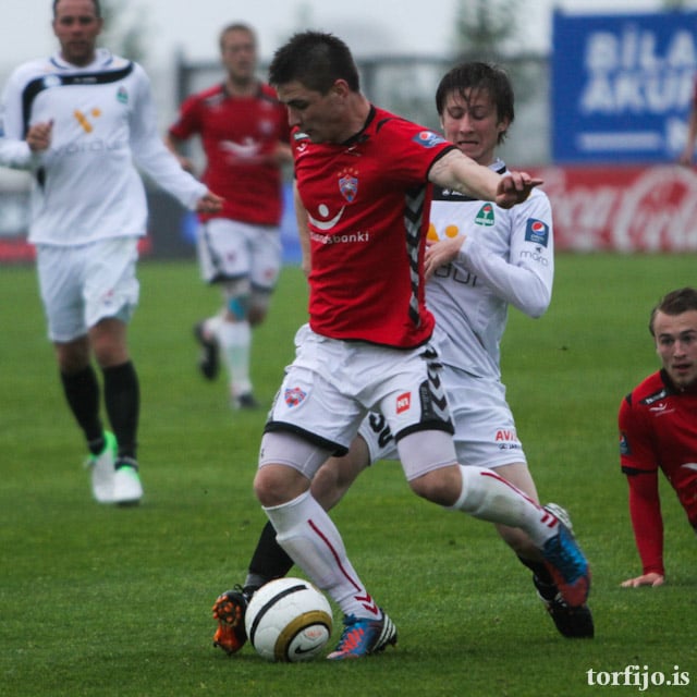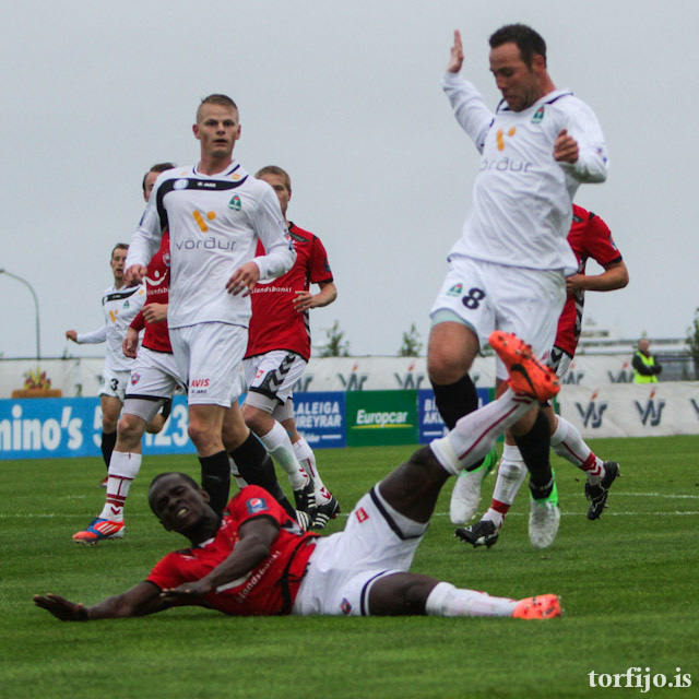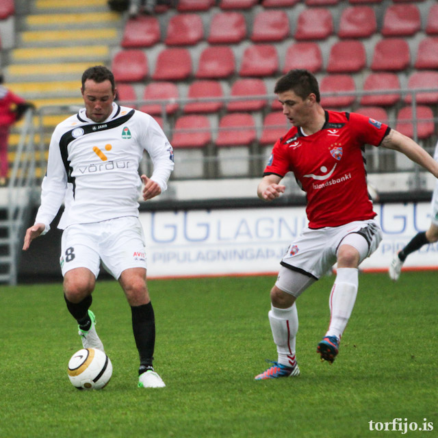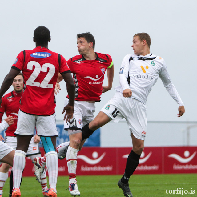 Ben Everson í fínu skotfæri en skot hans beint á Ólaf Þór í markinu. Góðir tilburðir í aðdragandanum frá Þórði Steinari sem er kominn á kantinn, Gísli Páll í bakvörðinn.