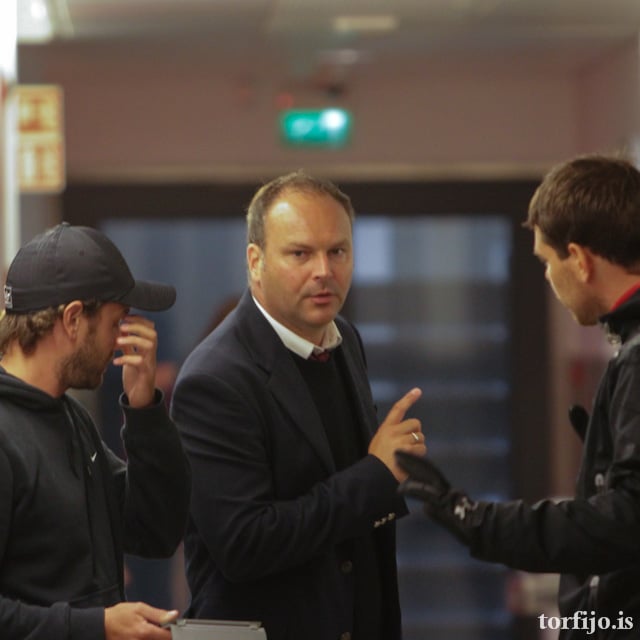 Kokkurinn frá Sandgerði, Magnús Þórisson, flautar leikinn í kvöld. Áskell Þór Gíslason og Haukur Erlingsson eru aðstoðardómarar.