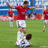 Þórður Steinar Hreiðarsson, varnarmaður Blika, með flotta skottilraun en boltinn rétt framhjá. Þórður er kallaður minkurinn en þess má geta að í hádeginu fékk hann sér kjúkling á veitingastaðnum Hananum í Skeifunni.