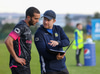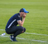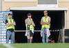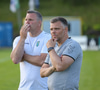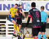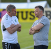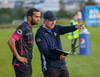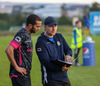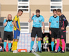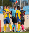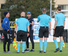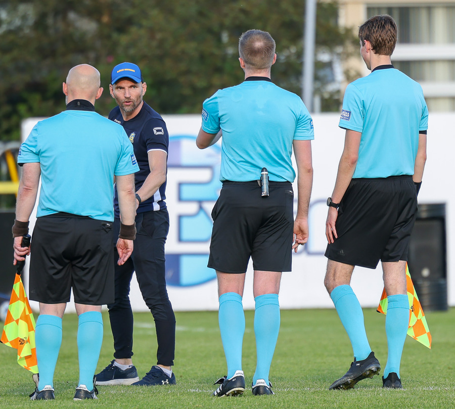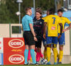 Bjössi Hreiðars er ekki ánægður með Helga Mikael dómara leiksins. Acoff var að fá aðhlynningu hér inná vellinum á meðan leiknum stóð yfir. Það leið svo asni langur tími þar til leikurinn var stöðvaður.