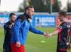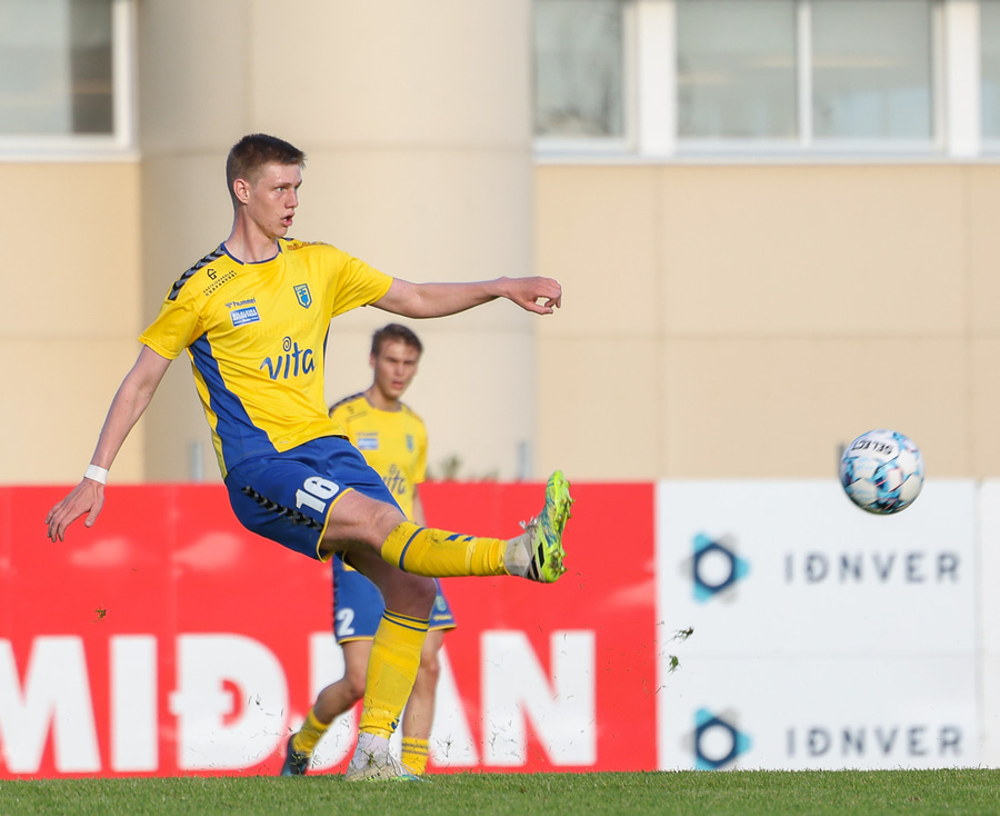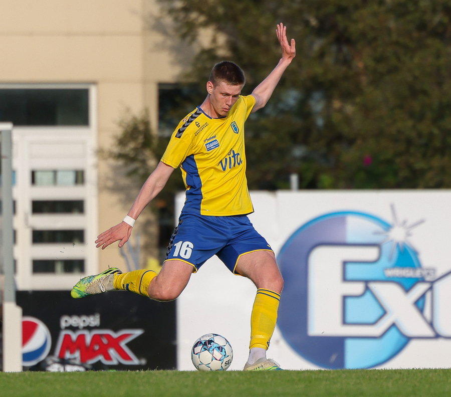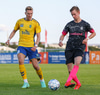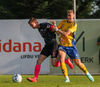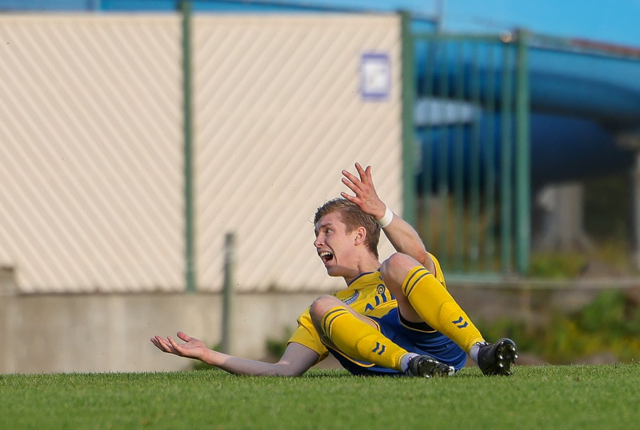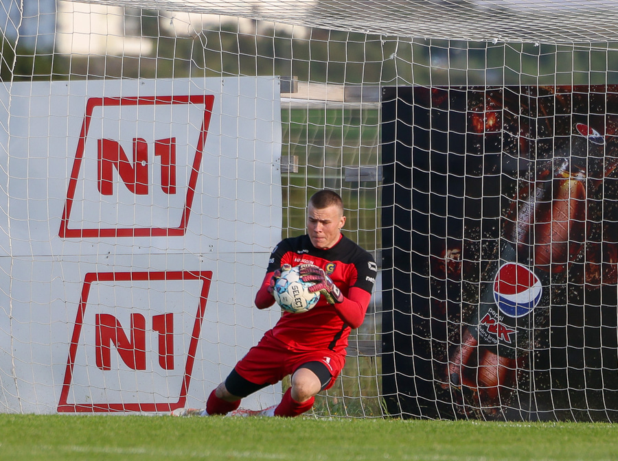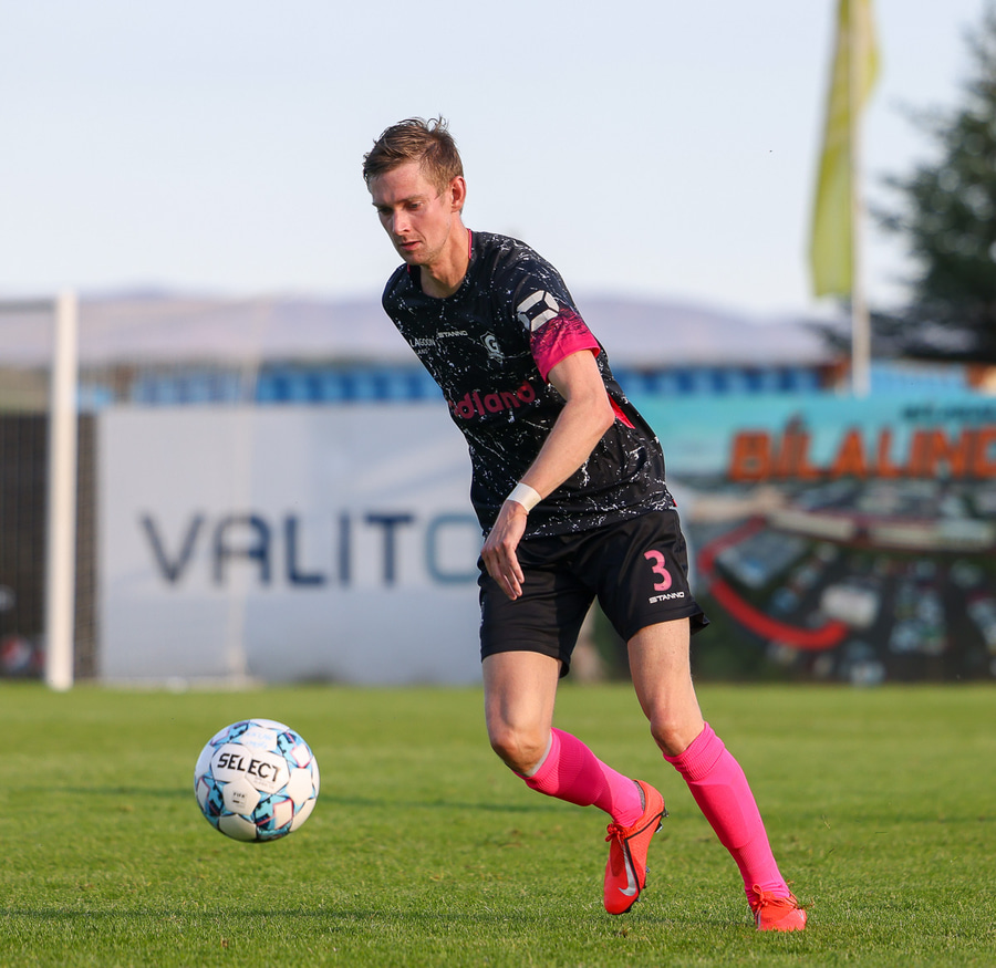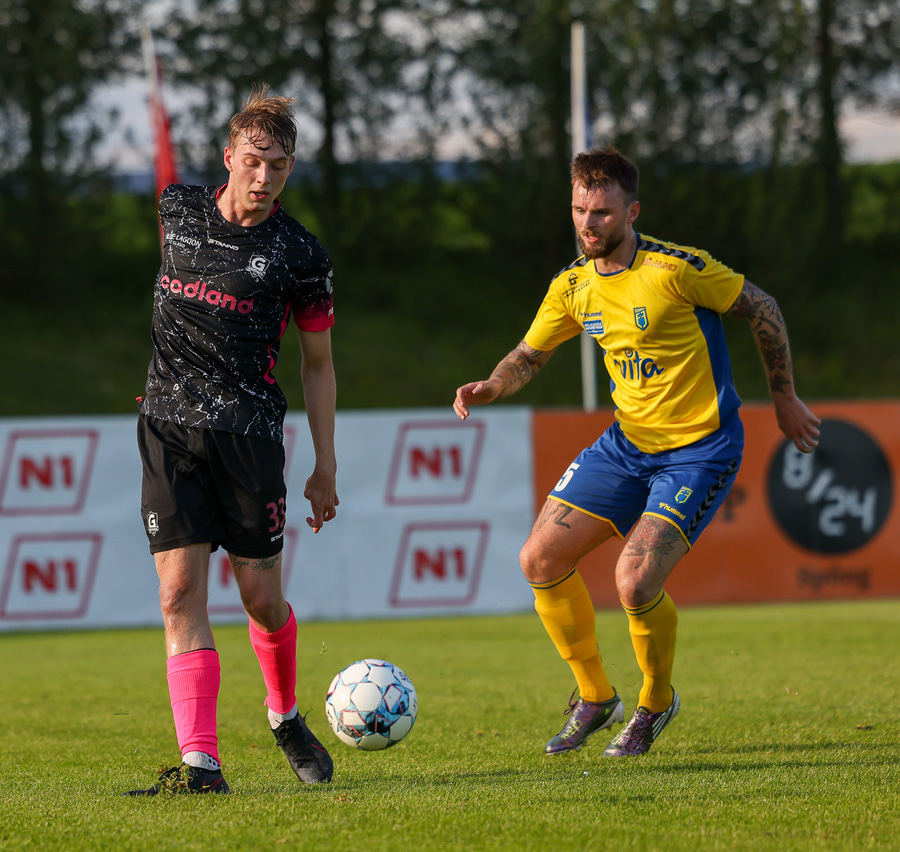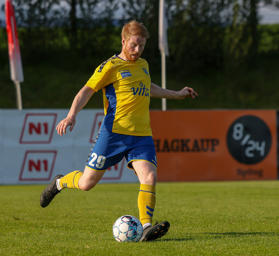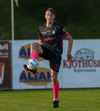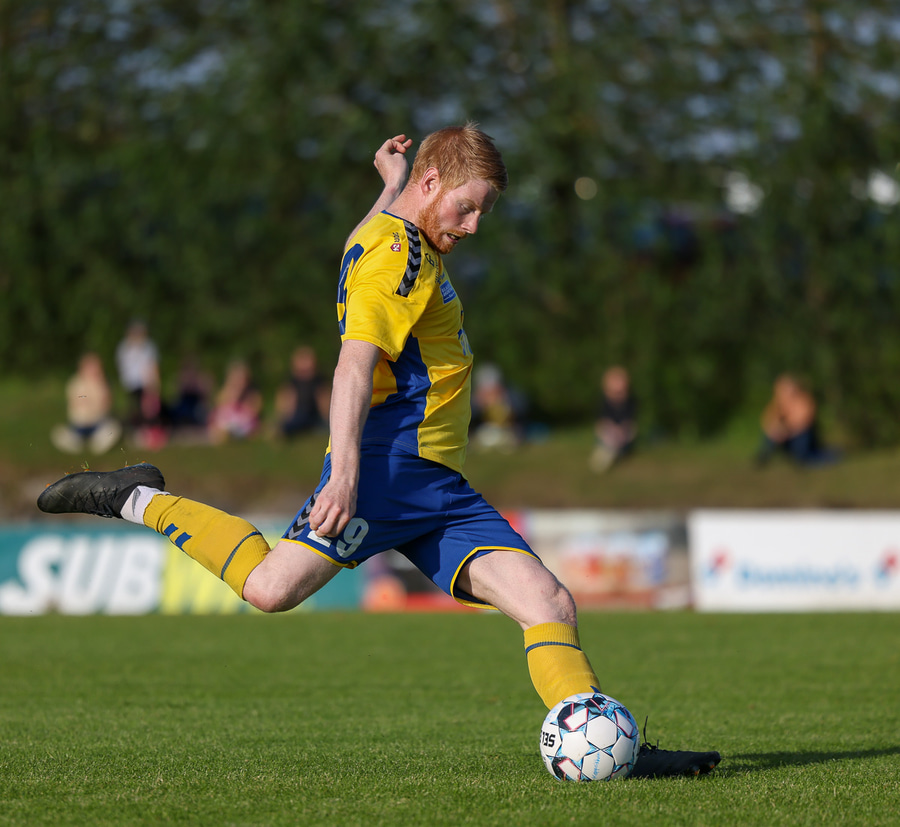 Andri Freyr losar boltann út á hægri kantinn á Viktor sem reynir lágann bolta fyrir en hann kemst ekki á samherja.