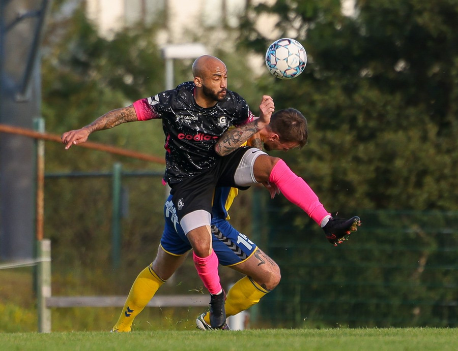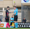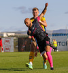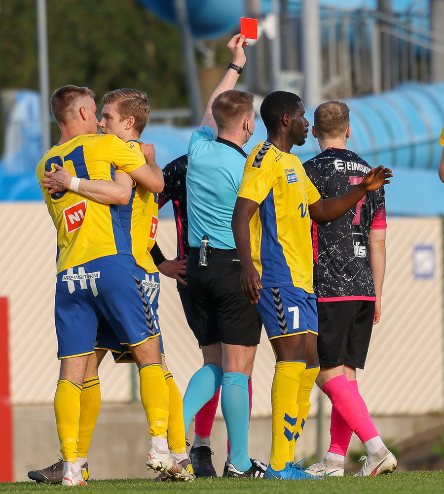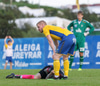 Tiago hoppar hérna í Valdimar Inga og Valdimar tekur slæma byltu. Ég hef nú oft séð gult á þetta.