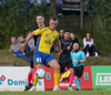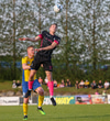 Hornspyrna hjá Jóhanni Árna beint á kollinn á Baldur Sigurðsson en hann skallar framhjá.