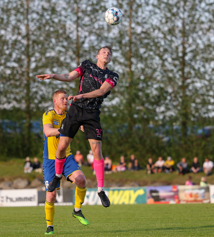 Hendi dæmd á Jóhann Árna en annars hefði þetta einmitt verið dauðafærið boltinn kemur fyrir frá Viktori og Jóhann galopinn en óheppinn að fá hann í hendina.