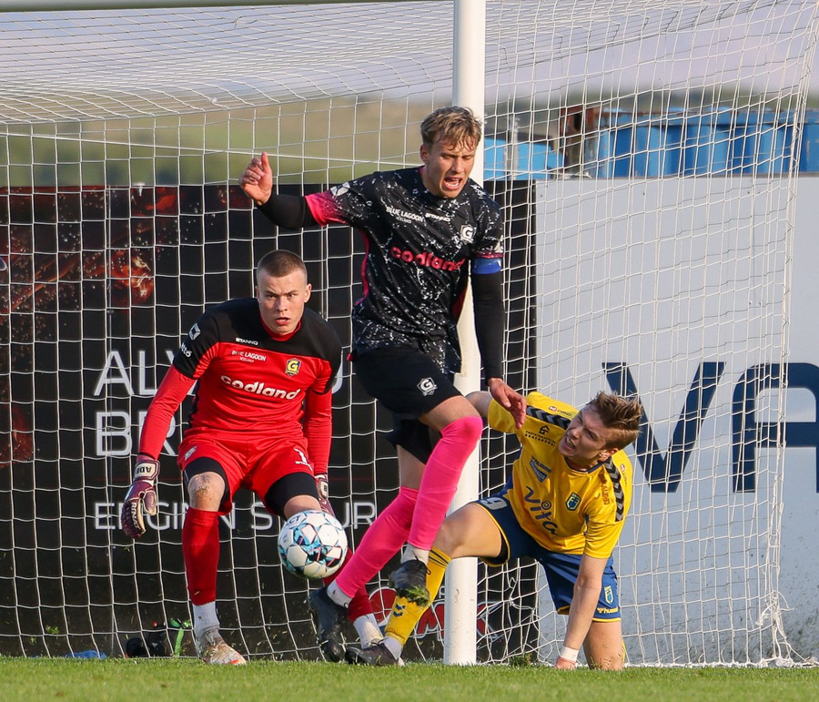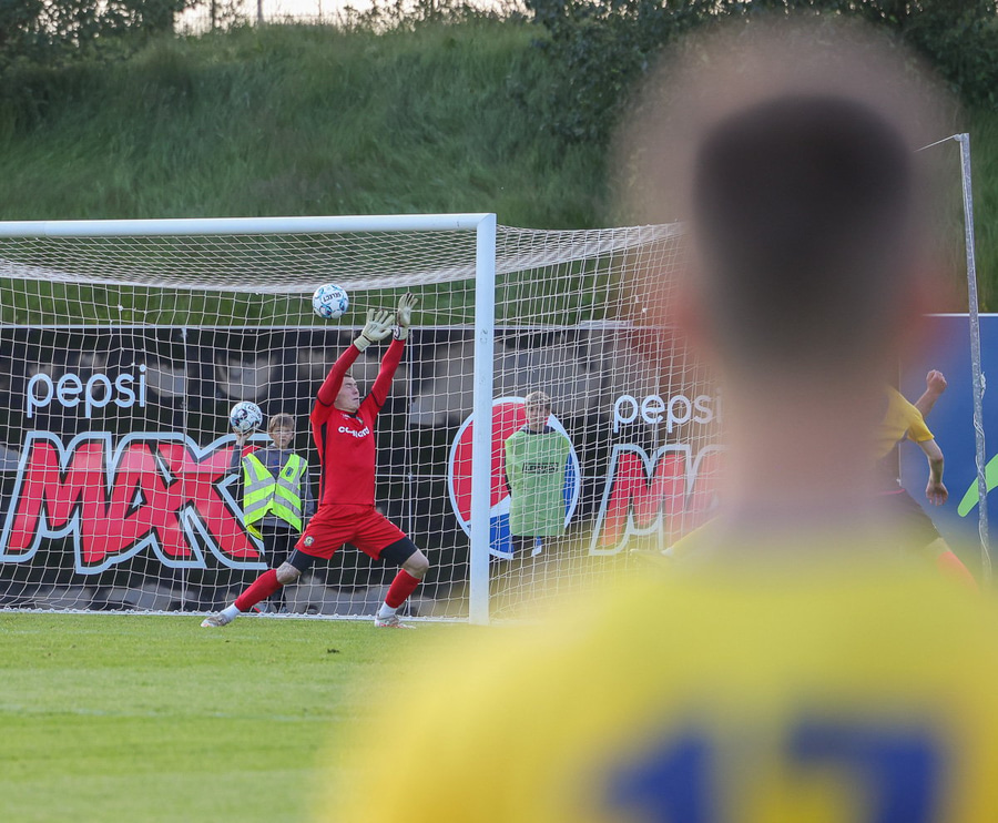 Hörkuskot hjá Sigurði Bjart alveg uppúr þurru, þrumar honum en skotið rétt framhjá.
