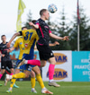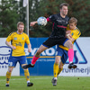 Hornspyrna fyrir heimamenn en spyrna Jóhanns er blakað frá af Aroni Degi.