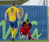 Bakare hleypur upp völlinn óáreittur með skotið sem Aron ver boltinn hrekkur til Jóhanns sem á skilið mark en Aron með nokkurskonar Schmeicel takta og sér við honum.