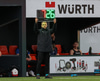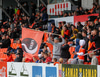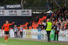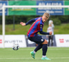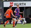 Guy Smit reynir sendingu með vinstri upp völlinn en boltinn fer upp á þakið á stúkunni. Fylkir á innkast.