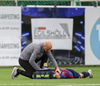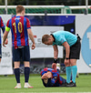 Gult spjald á fyrirliðann sem þarf líka að fara út af eftir að hafa fengið aðhlynningu. Ásgeir þarf ekki að fara út af þar sem Sævar fékk spjald.