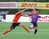 Hjalti kemur á sprettinum og er að komast í boltann við hliðarlínuna rétt fyrir framan miðlínu á vallarhelmingi Fylkis, Daði reynir að ná til boltans, rennir sér og fer í Hjalta. Egill lyftir rauðu!