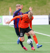 Ásgeir gerir vel þegar Sævar reyndi að komast framhjá honum á sprettinum. Ásgeir steig Sævar vel út og vann boltann.