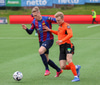 Þetta er allt að fara af stað. Fylkir spilar í appelsínugulum treyjum og Leiknir í bláum og fjólubláum.