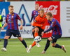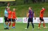 Helgi með skot sem Guy ver vel til hliðar. Þar er Arnór Borg og heimamenn héldu að hann væri að skora. Arnór hins vegar skaut í hliðarnetið úr upplögðu marktækifæri!
