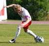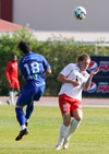 Jóhann Helgi fær boltann inn í teignum, hann leggur boltann út á Ólaf Aron sem á skot framhjá.