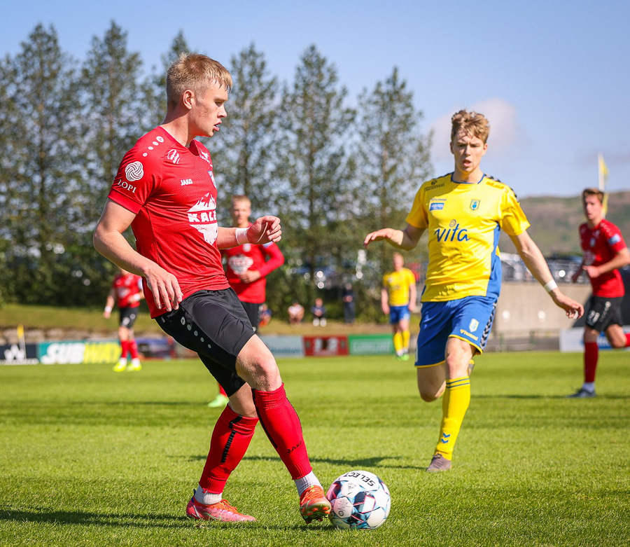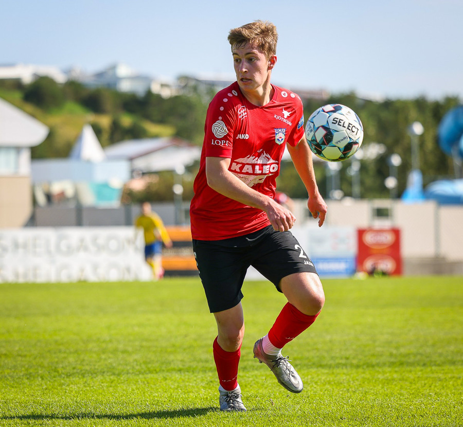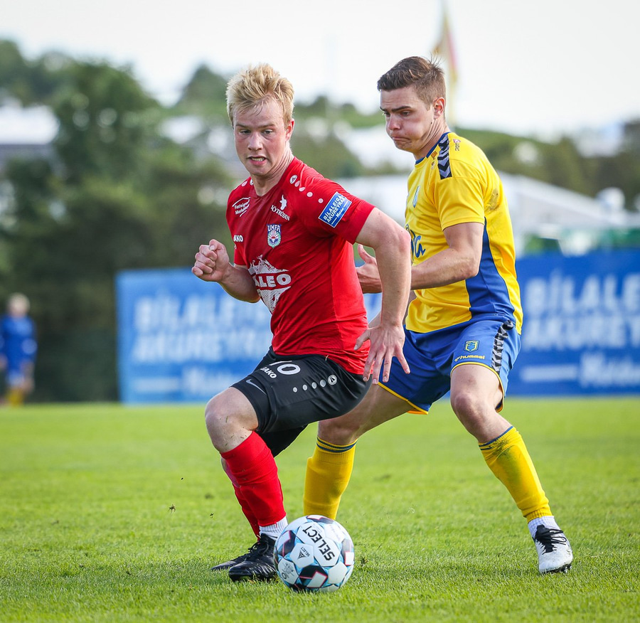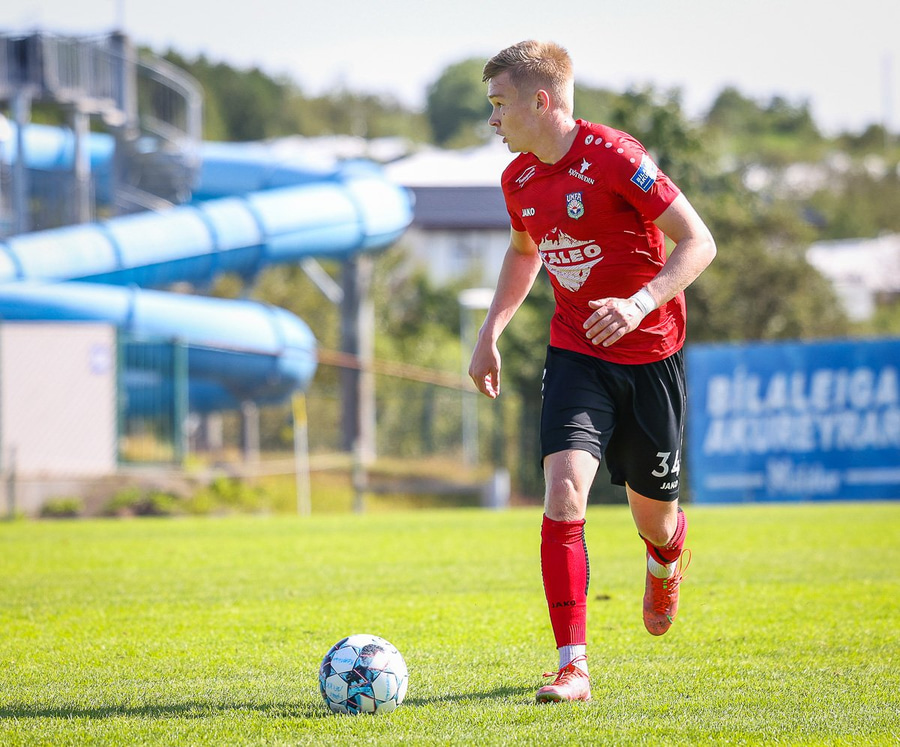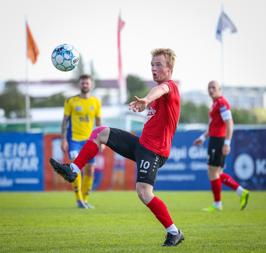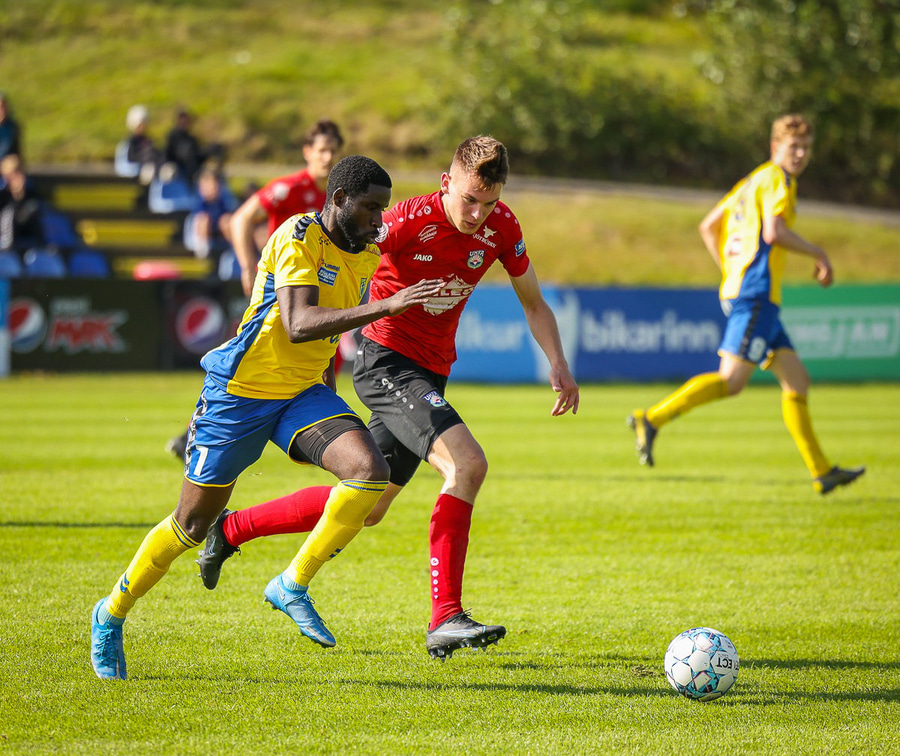 Arnór Breki fer roslega illa með 2 á 1 stöðu er hann reynir að finna Bakare með háum bolta í teignum. Boltinn svífur langt frá Bakare og færið rennur út í sandinn.