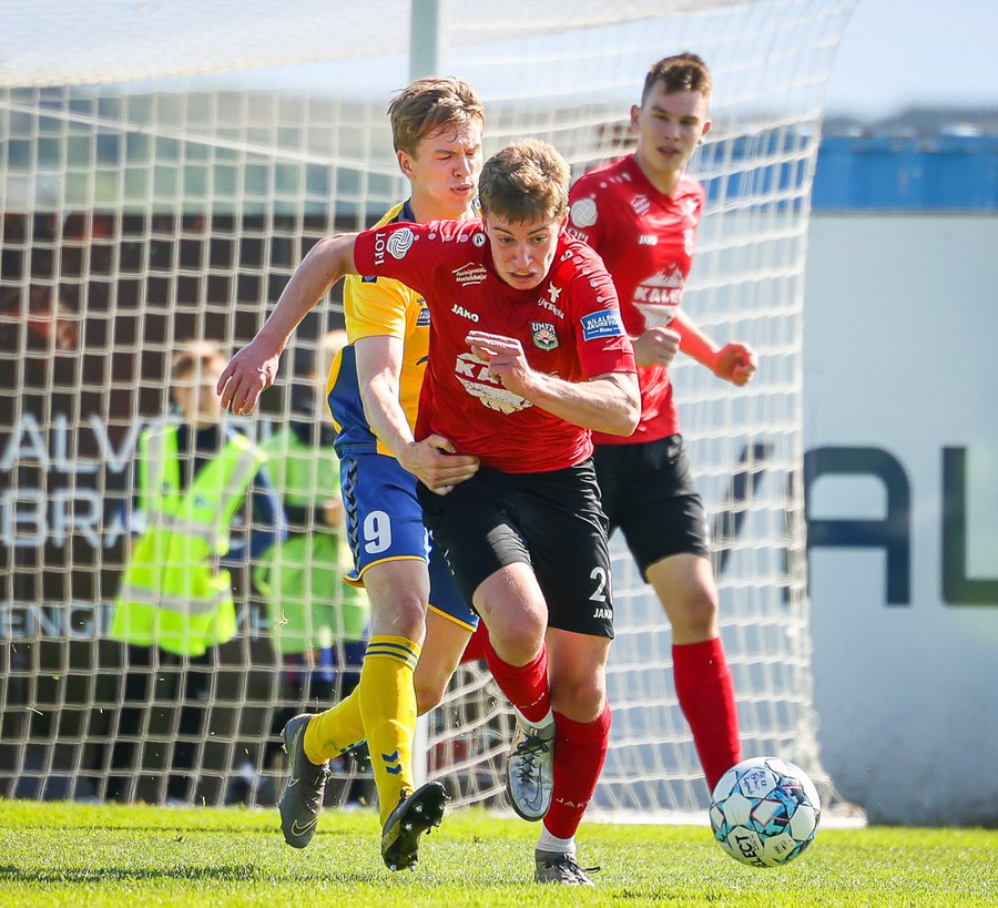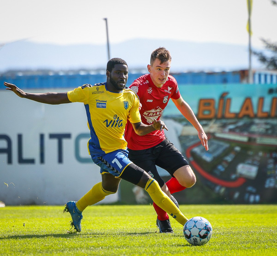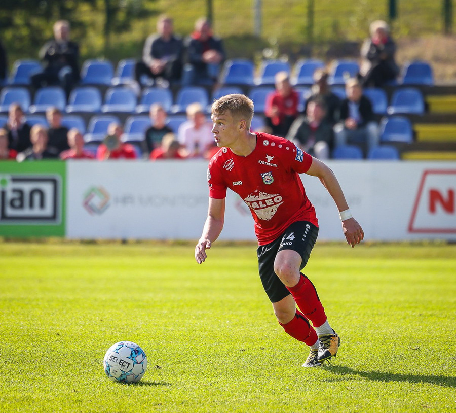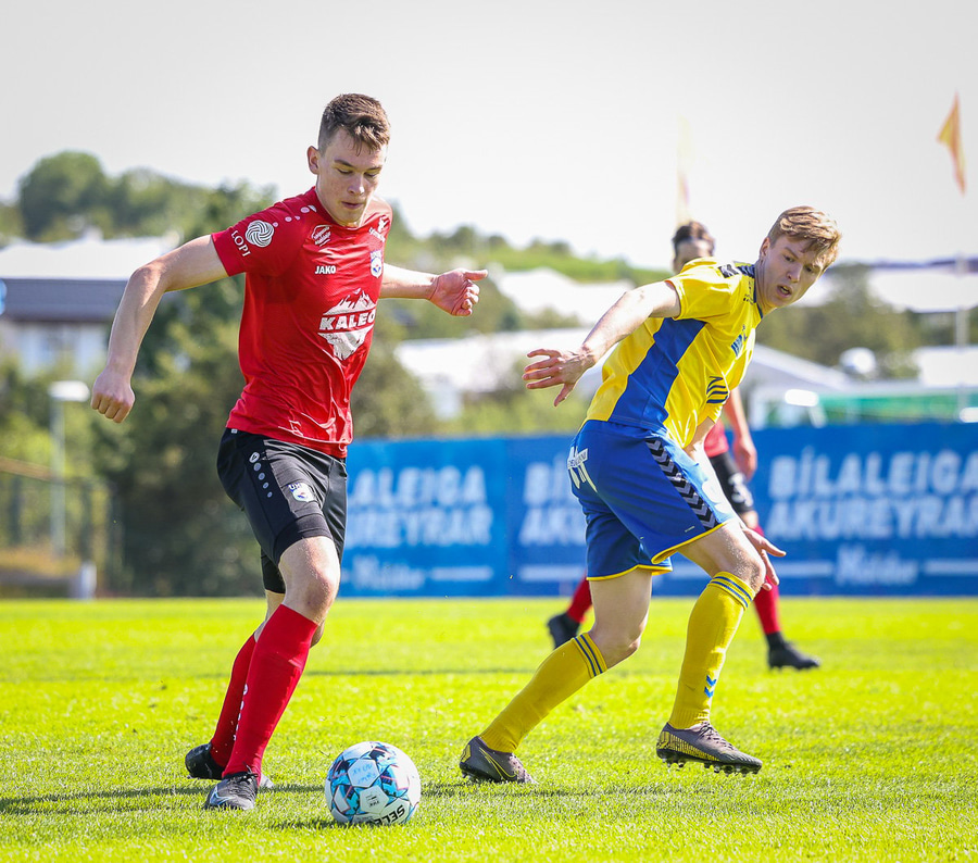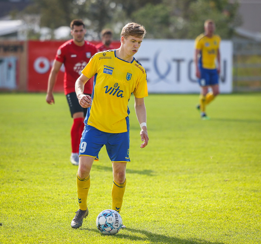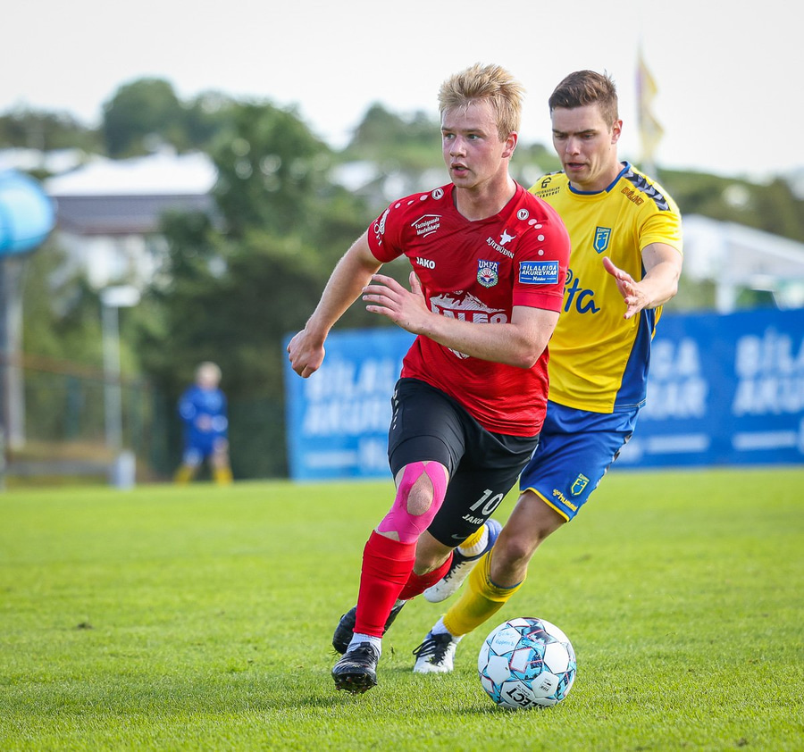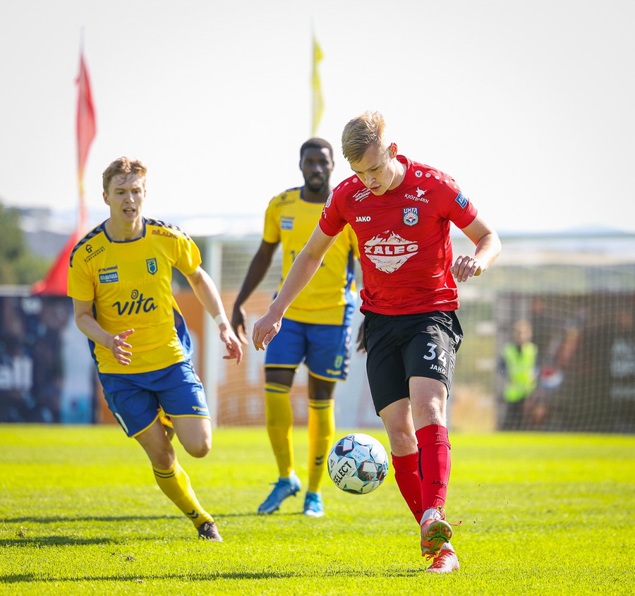 Arnór Breki fer roslega illa með 2 á 1 stöðu er hann reynir að finna Bakare með háum bolta í teignum. Boltinn svífur langt frá Bakare og færið rennur út í sandinn.