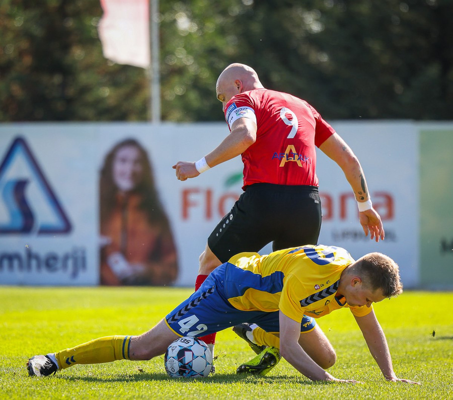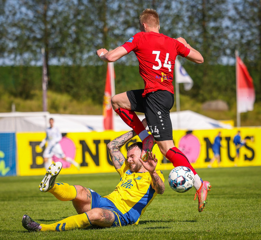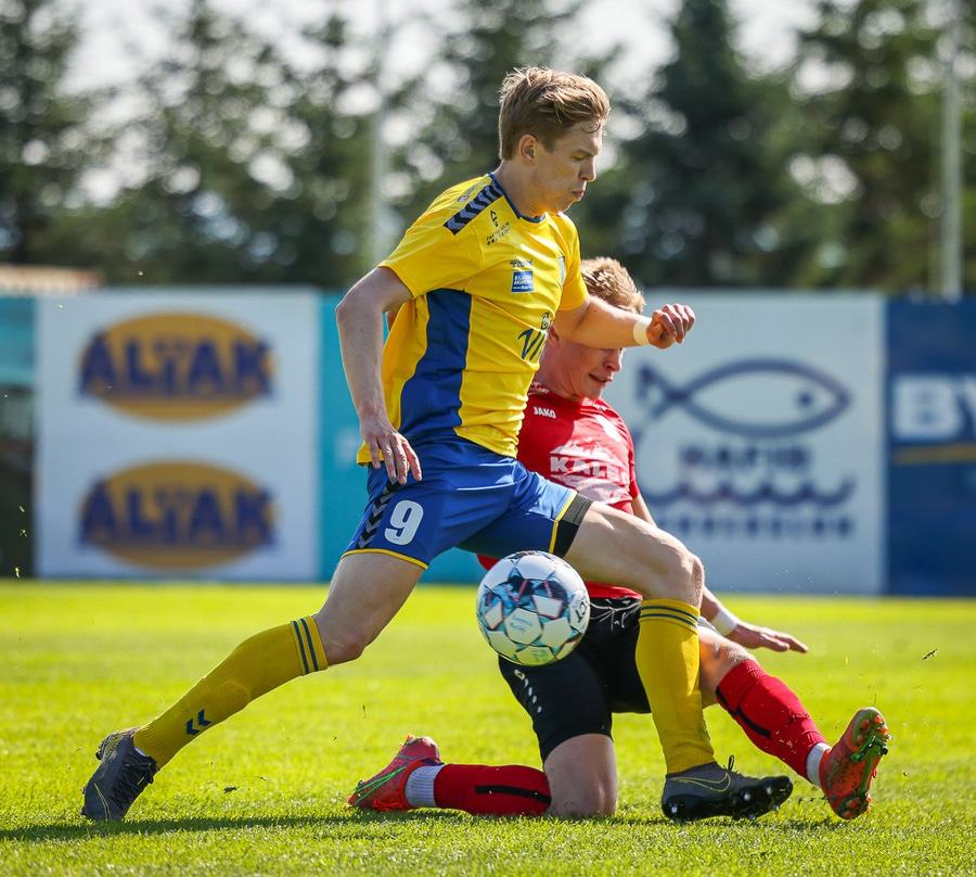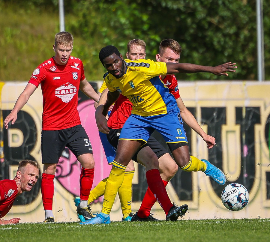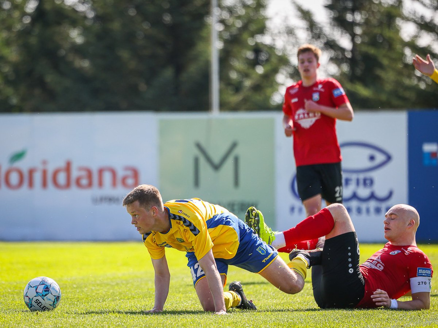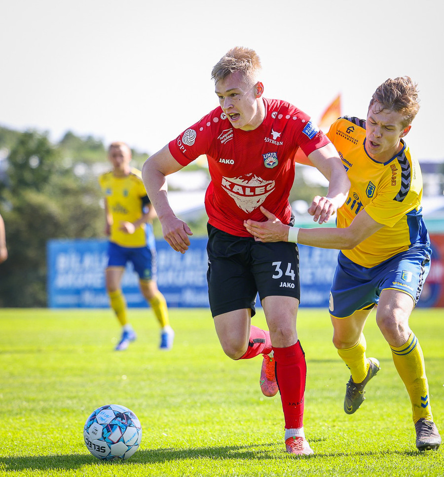 Arnór Breki fer roslega illa með 2 á 1 stöðu er hann reynir að finna Bakare með háum bolta í teignum. Boltinn svífur langt frá Bakare og færið rennur út í sandinn.
