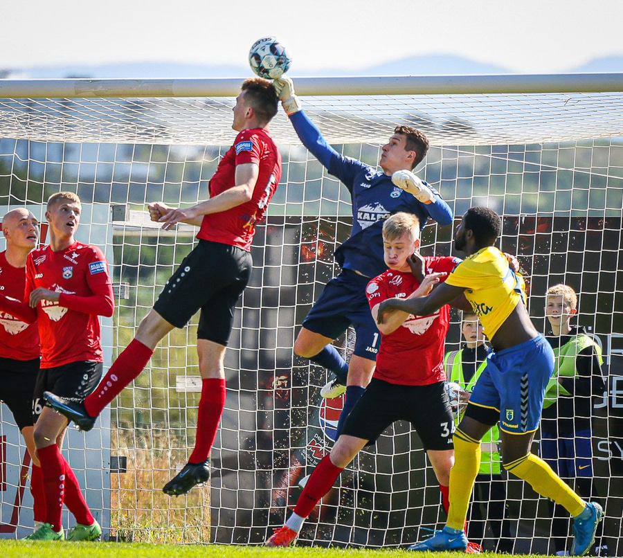 Arnór Gauti með skalla að marki en Sigurjón vel staðsettur og handsamar boltann auðveldlega.