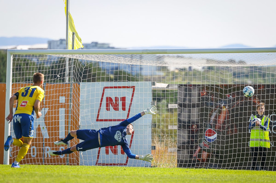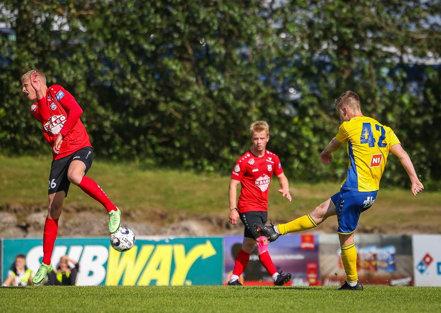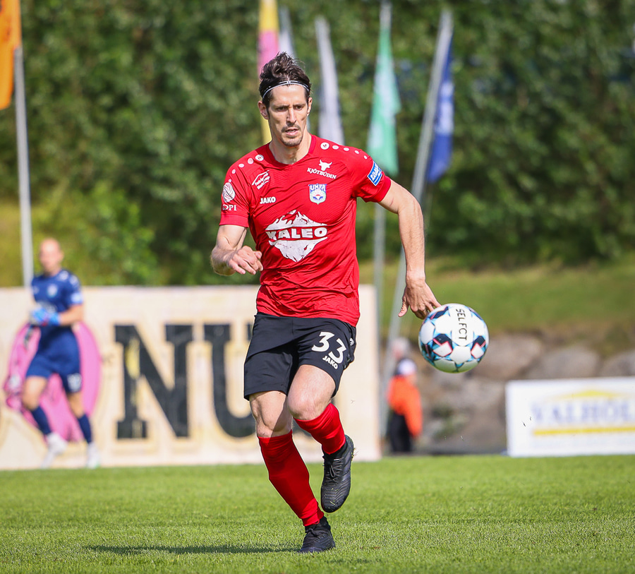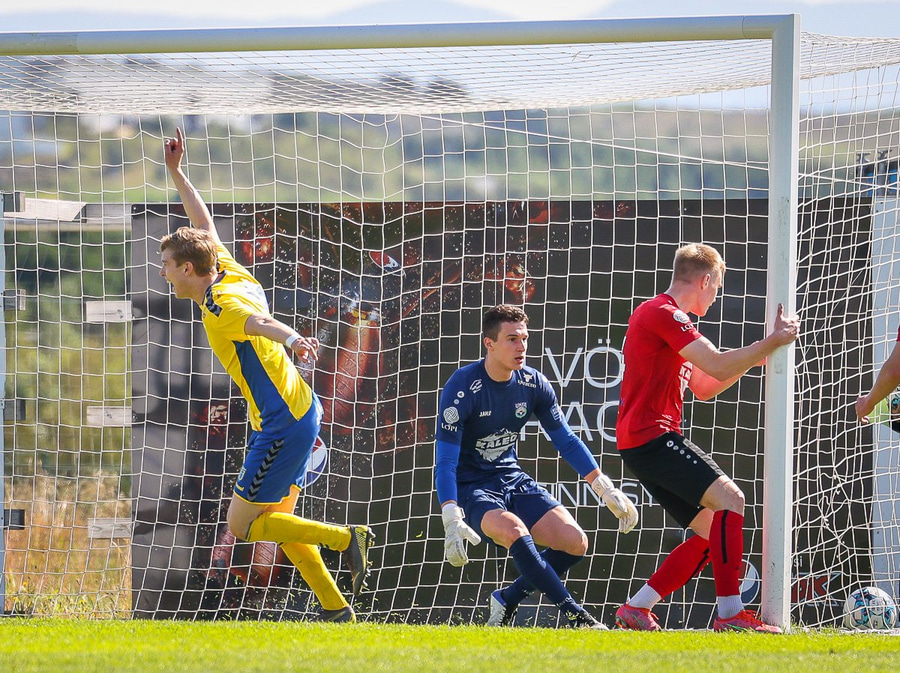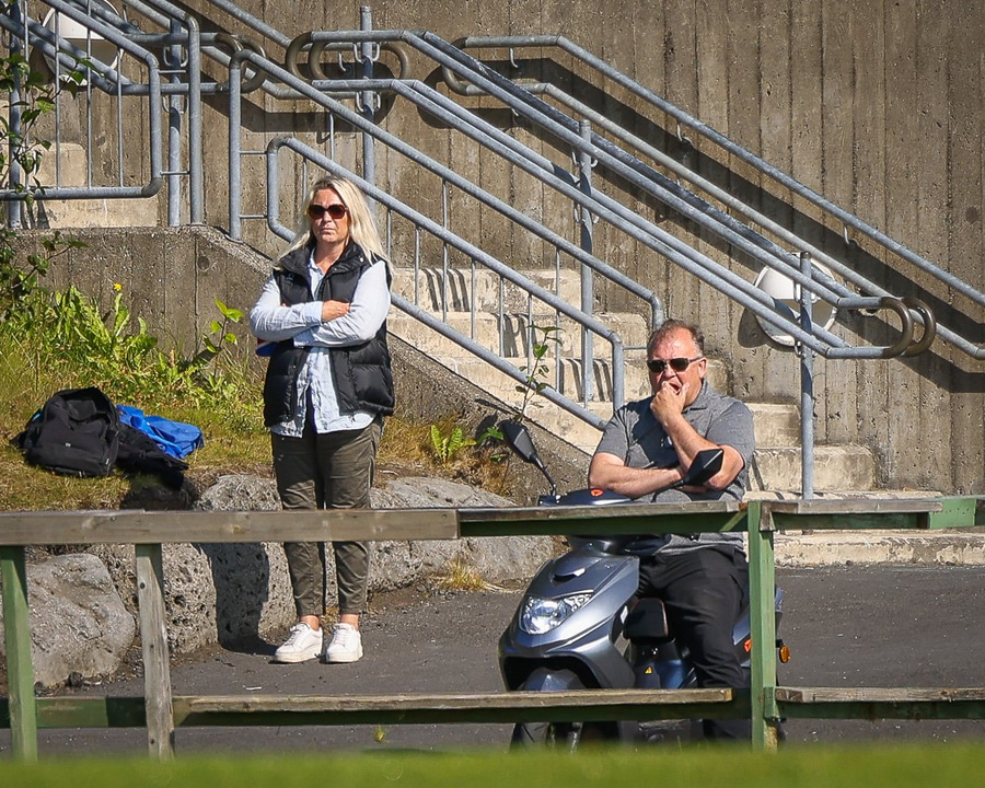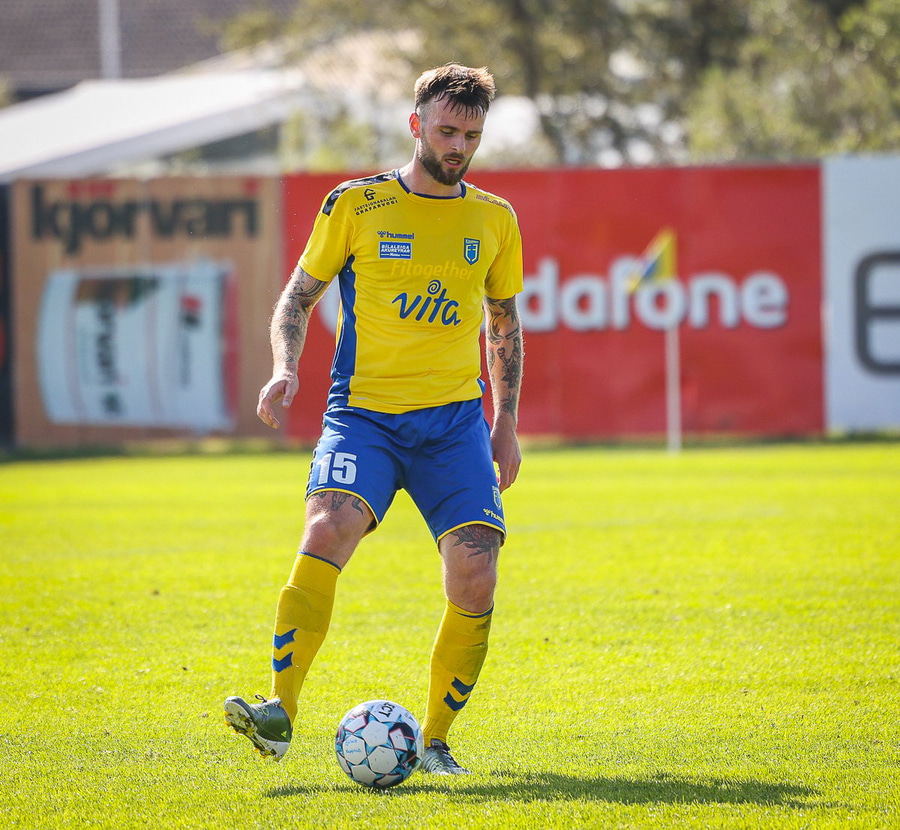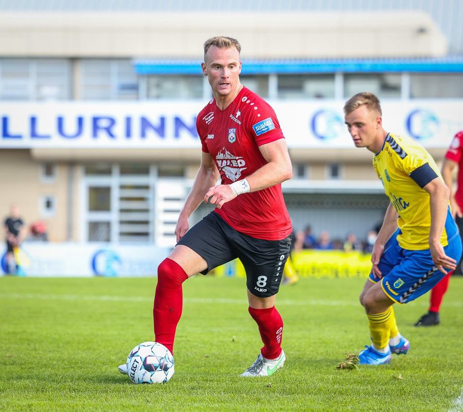 Pedro Vazquez með snögga aukaspyrnu sem Arnór Gauti nær að reka tærnar í á undan Sigurjóni. Boltinn yfir markið en besti séns gestanna til þessa.