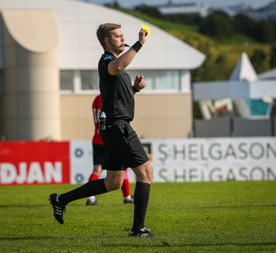 Tók ekki langan tíma að fá fyrsta spjald hálfleiksins.