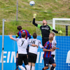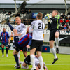 Jónatan tekur spyrnuna en Danni Finns stekkur manna hæst í teignum og stangar boltann frá!!