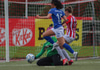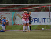Dani skallar boltann sem er á leið að marki. Katie Cousins setur hann svo yfir marklínuna en er dæmd rangstæð.