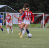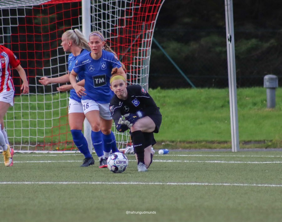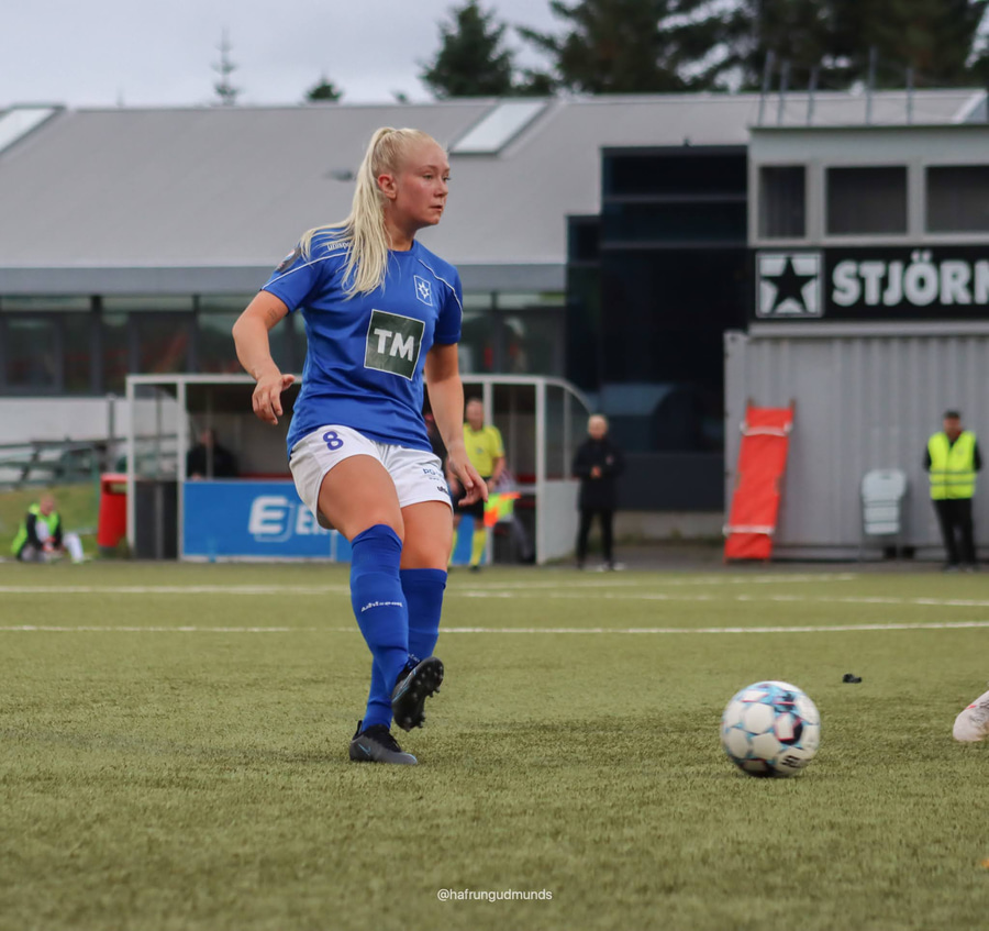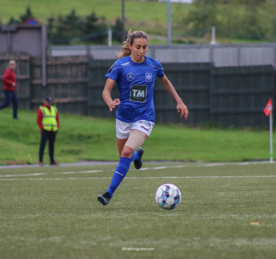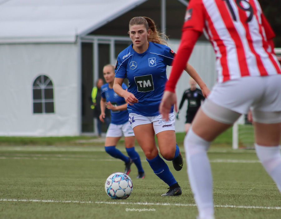 Ólöf Sigríður á skot eftir fyrirgjöf en setur boltann beint á Höllu Margréti markvörð!