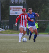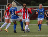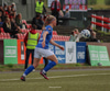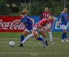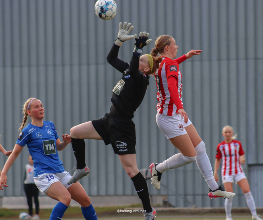 Andrea setur boltann fyrir en Elín Helga skallar frá.