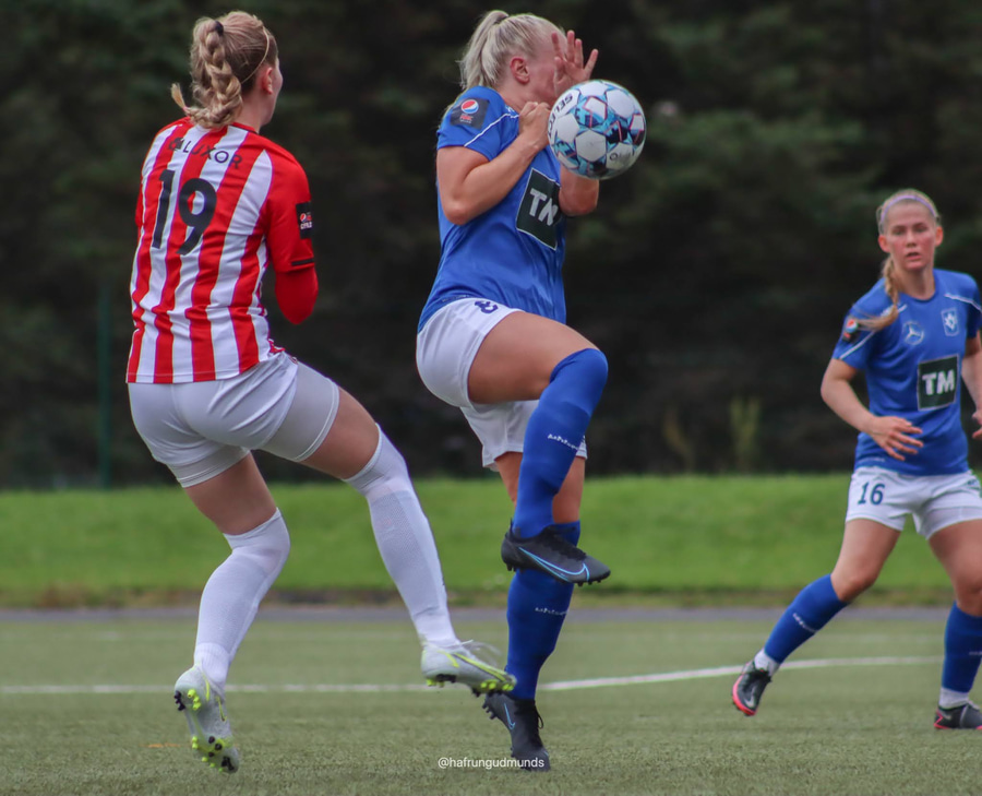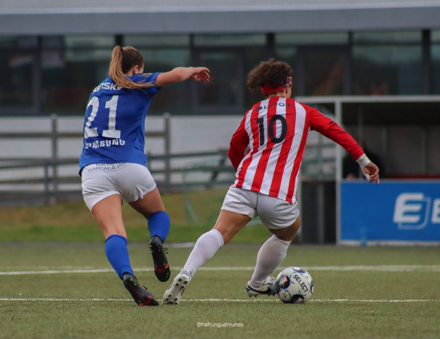 Í þetta skiptið frá Ölmu sem hafði fengið góða sendingu inná teig frá Ingibjörgu Lúcíu.