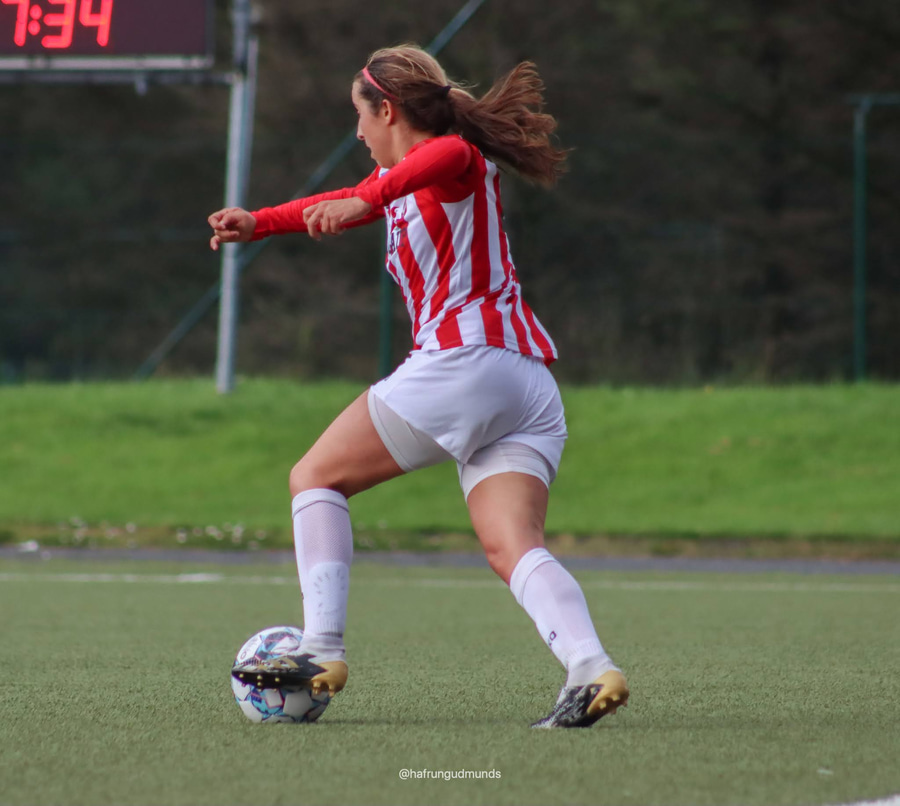 Fékk boltann frá Katie Cousins sem hafði haldið vel í boltann, aðþrengd varnarmönnum, eftir fyrirgjöf frá hægri.