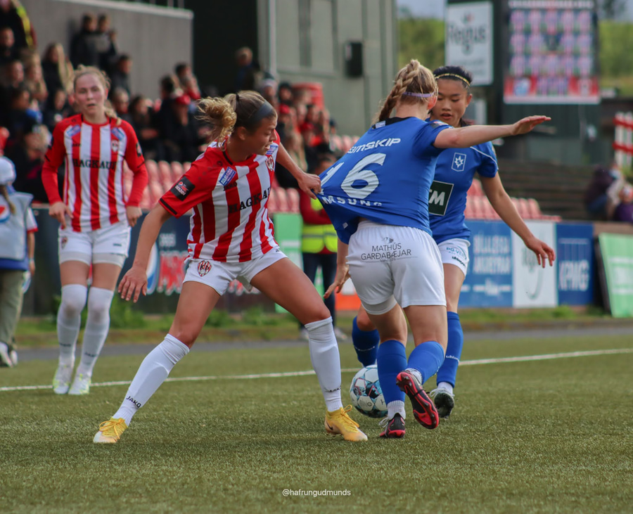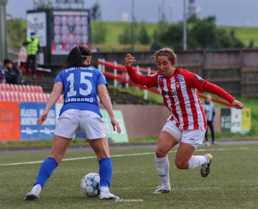 Sædís verst Ólöfu Sigríði. Boltinn af Sædísi og aftur fyrir. Heimakonur fá fyrsta horn leiksins.
