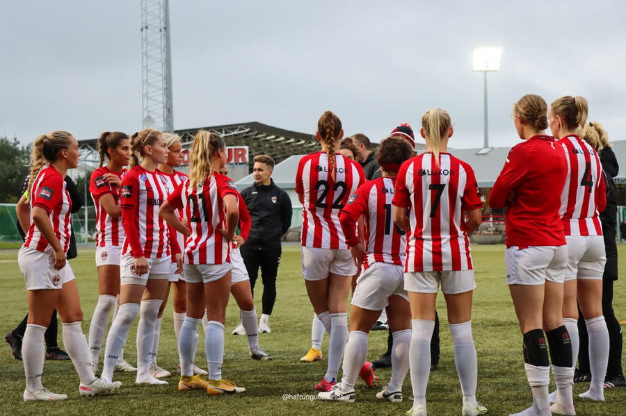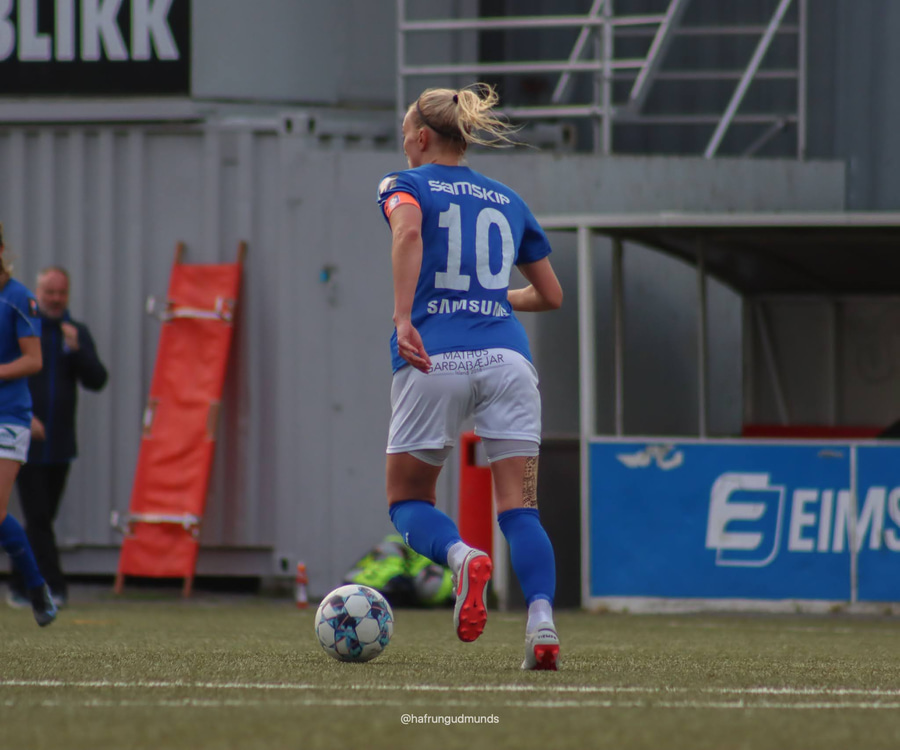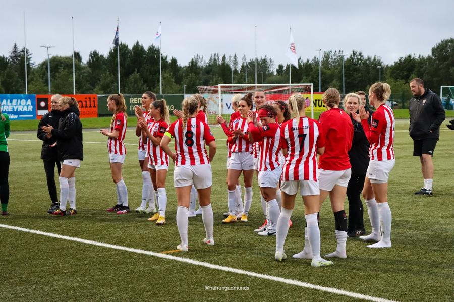 Fyrsta skiptingin í leiknum. Sóley fer í vinstri bakvörðinn, Sædís upp á vinstri kant og Alma færir sig yfir á hægri vænginn.