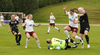Leikurinn er stopp. Margrét fór heldur hátt með fótinn í Kristrúnu maríu sem liggur eftir.
