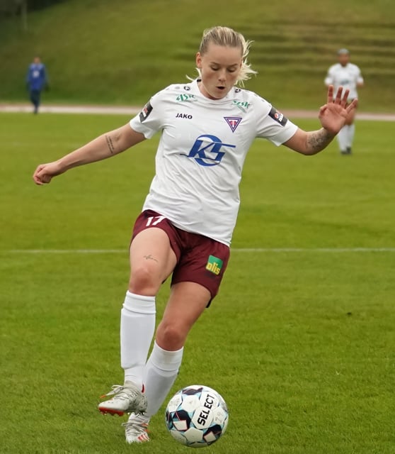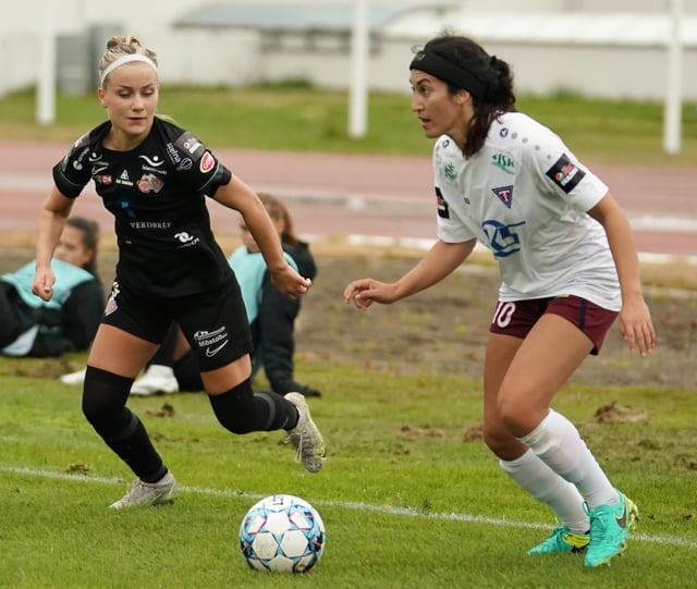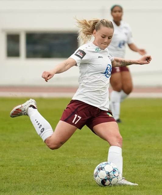 Shaina með sendingu á Sögu Líf sem átti frábæran snúning en skotið vel yfir markið.