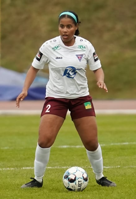 Shaina skyndilega kominn í gott færi. Kristrún í vandræðum í vörninni en Shaina með slakt skot framhjá markinu.