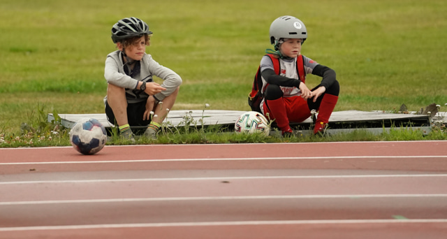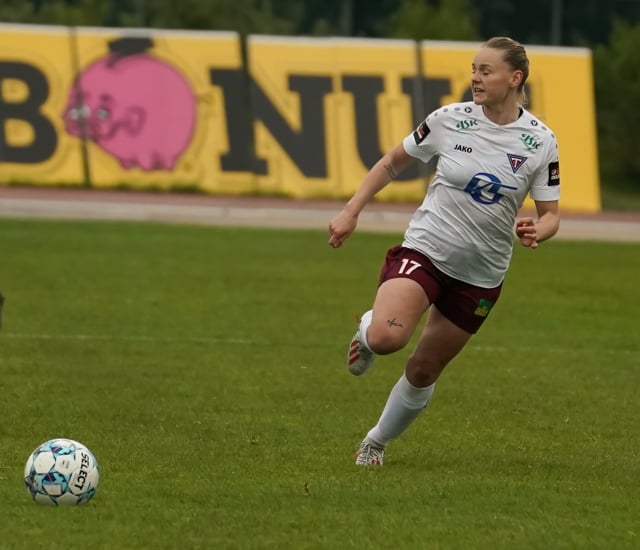 Harpa fer í úthlaup og verður fyrir einhverju hnjaski. Hún stendur fljótt upp og heldur leik áfram.
