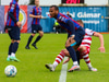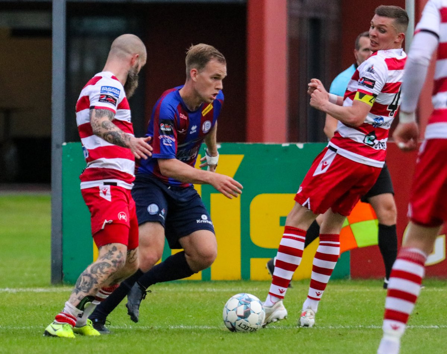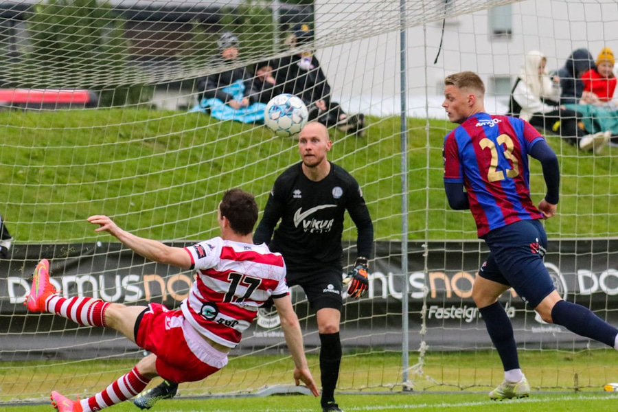 Fínasta spyrna frá Daníel Finns sem Arnar Freyr blakar til hliðar og í innkast hinu megin.