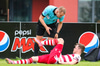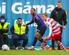 Guy Smit fór niður þegar Ásgeir kom með fyrirgjöfina. Mögulega fór Martin eitthvað í hann en þetta var mjög lítið...