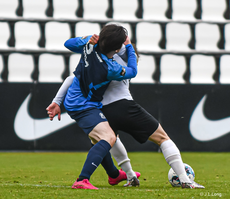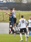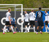 Volesky, nýkominn inn sem varamaður, sendir Marley Blair einan í gegn en hann skýtur framhjá. Þarna hefðu gestirnir átt að komast yfir!