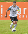 Boltinn dettur á Pétur Viðars fyrir utan teiginn og hann tekur boltann á lofti, vel yfir markið og engin hætta.