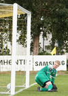 Árni Marinó í basli! Ásgeir blokkar spyrnu Árna sem var alltof lengi að athafna sig!
