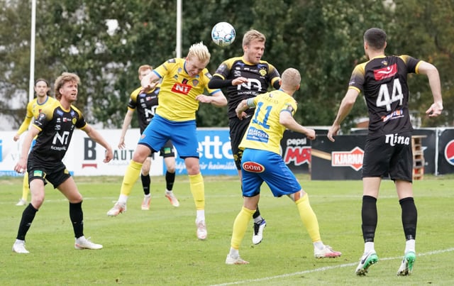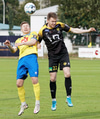 Sveinn Margeir finnur kollinn á Dusan en Serbanum tekst ekki að stýra boltanum á markið.