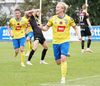 Skagamenn héldu boltanum og Brebels fær gult spjald fyrir að fara of hátt með löppina beint fyrir utan teig KA.