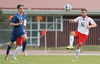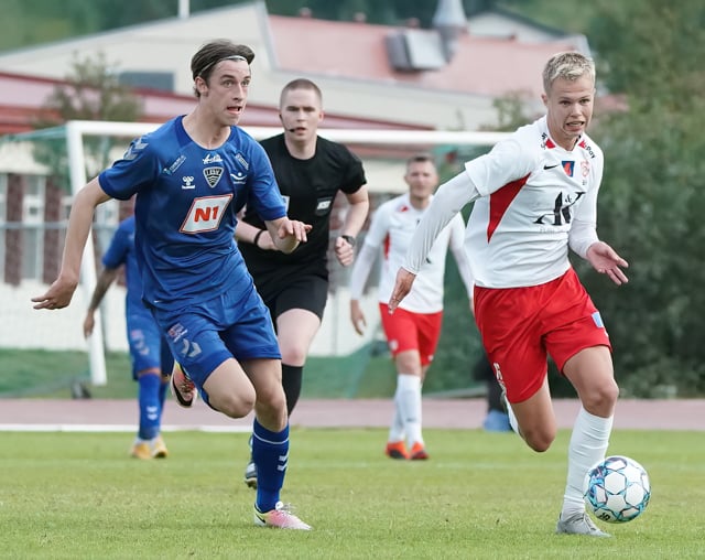 Slök fyrsta snerting hjá Elmari Þór, Breki kemst í boltann og lætur skotið ríða af rétt fyrir utan teiginn en boltinn fer yfir markið.