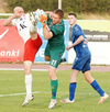 Bjarni Guðjón að komast í gott færi en Sigurður Arnar sterkur og nær að stöðva hann.