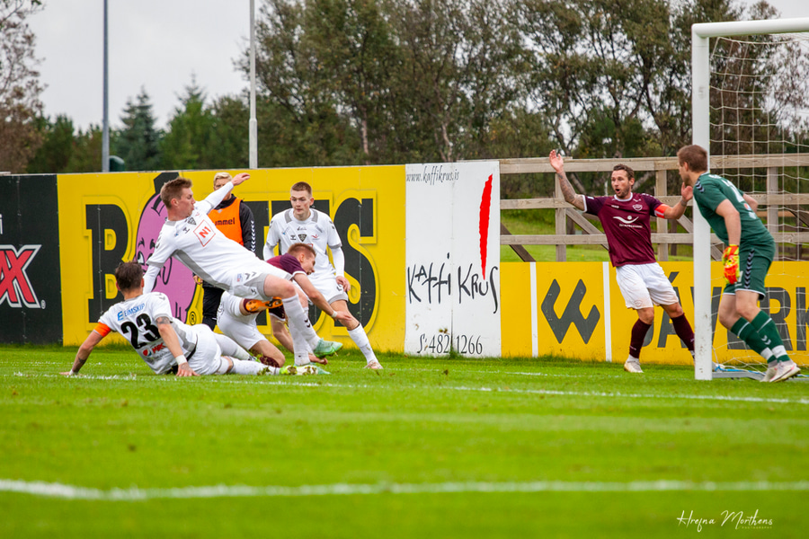 Þormar með góðan bolta og Gary tekur boltan á lofti með hælnum og Valdimar klárar þetta alveg í hornið.