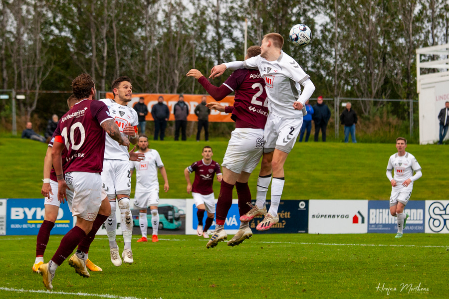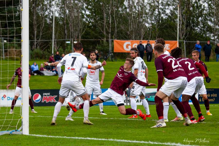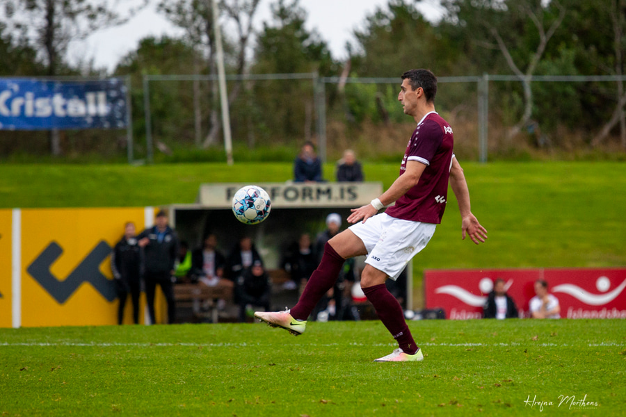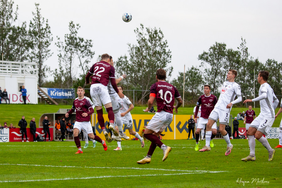 Valdimar fær botann eftir góða pressu hjá Aroni og flottir taktar og vinnur horn en ekkert kemur úr því.
